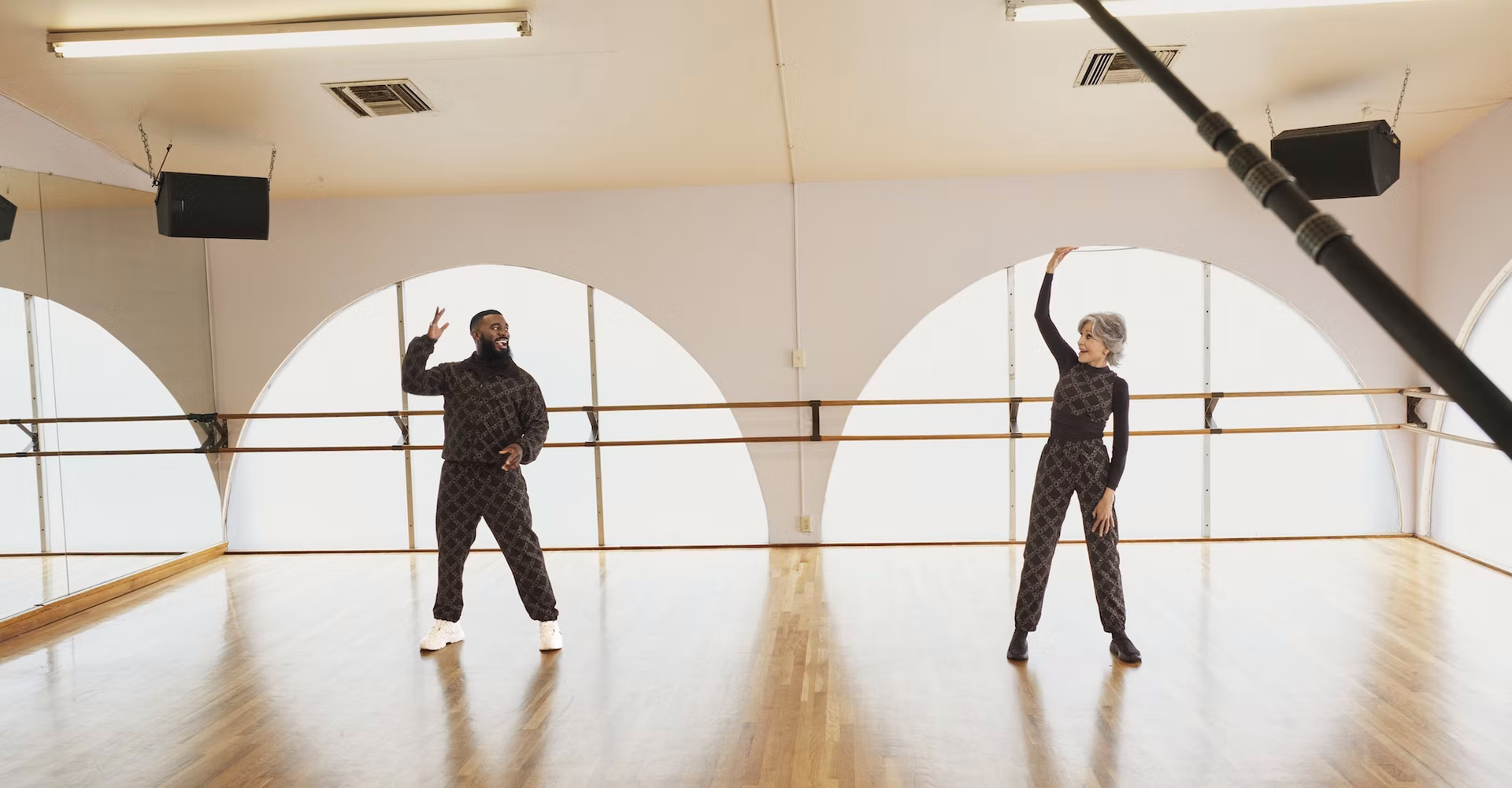 The inclusion of Fonda (who is in her 80s) in the campaign is an inspired move, especially for those either around in the 1980s or inspired by the decade, when Fonda’s VHS aerobics video became a cultural phenomenon. At that time Fonda was known for her bright leotards and leg warmers though her look for H&M is a touch more subtle. She appears in the ad alongside acclaimed choreographer JaQuel Knight, with the duo intercut by more traditional sporty imagery.