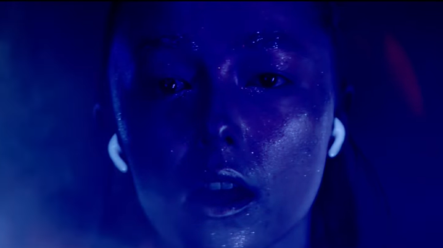 The advertisement follows Matilda Sakamoto, a Los Angeles native and Juilliard graduate, snapping between walking through the city with the Airpods on transparency mode during the day and dancing through a pulsating neon-lit cityscape at night with it on active noise cancellation mode.