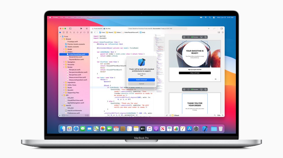 Using Universal 2 application binaries, developers will be able to easily create a single app that taps into the native power and performance of the new Macs with Apple silicon, whilst still supporting Intel-based Macs.