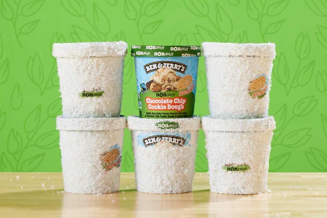 Ben & Jerry’s current non-dairy products use almond milk or sunflower butter because they work well with specific flavour chunks and swirls.