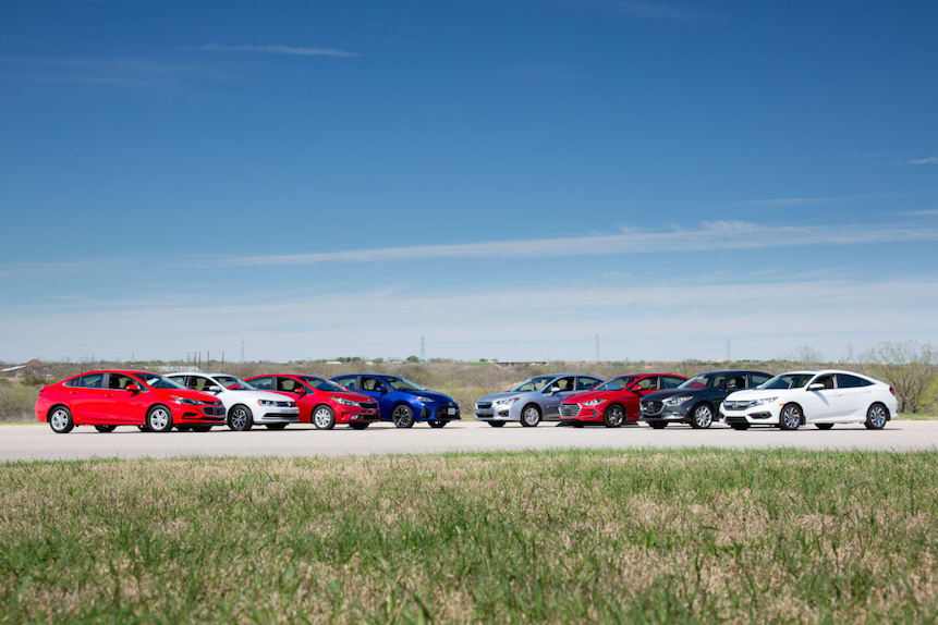 Testing was conducted to determine how the current class of vehicles has evolved over recent years. The following 2017 models were ranked based on extensive evaluation, Chevrolet Cruze, Honda Civic, Hyundai Elantra, Kia Forte, Mazda 3, Subaru Impreza, Toyota Corolla and Volkswagen Jetta.