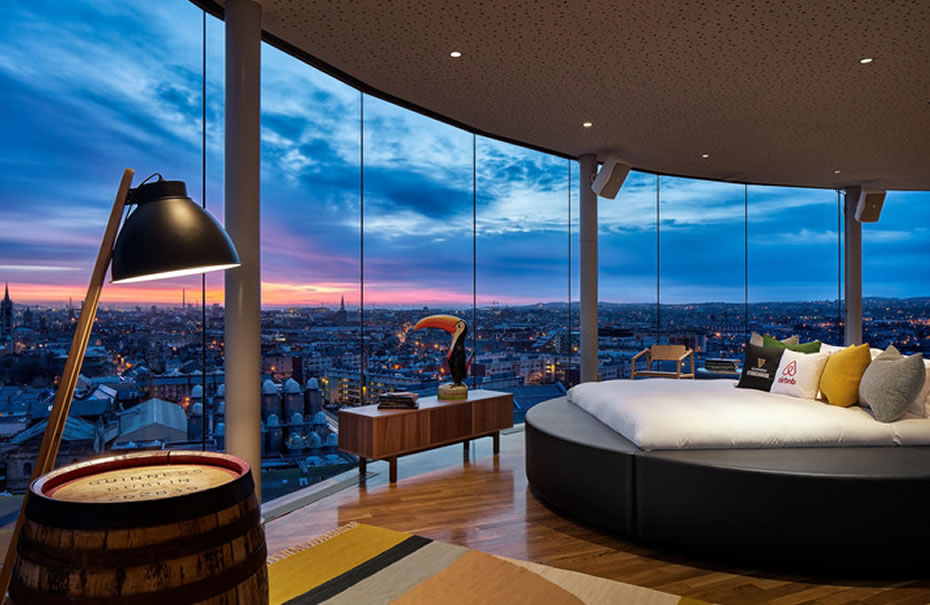 Ahead of St. Patrick’s Day, the Guinness Storehouse in Dublin has partnered with Airbnb to unveil Ireland’s first “Night At” competition by listing the seven-story visitor attraction as a unique residence on its website. One lucky beer fan and a friend will get the first ever opportunity to spend a night at the Home of the Black Stuff for free. The competition sees the iconic Gravity Bar converted into a loft and the Guinness Gates opened for a once in a lifetime experience.
