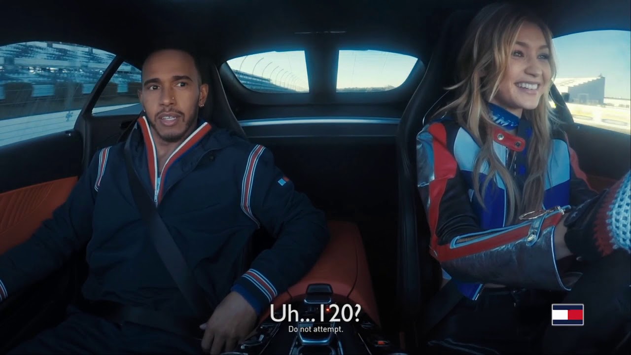 The campaigns fused when Lewis Hamilton and Gigi Hadid took the wheel of a Mercedes-AMG GT S car at the Pocono Raceway, and recorded their first drive together around the track in a dash cam shot video, directed by Matt Baron, that shows their reactions to the other’s driving skills.