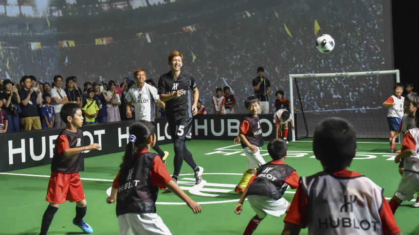 Swiss luxury watchmaker, Hublot, hosted a charity event together with Japan national team footballer, Takashi Inui, who plays for Spanish Club Real Betis, and Yuya Osako, who plays for German Club Werder Bremen. Children from the Tokyo metropolitan area took part in this event and participated in a short football game and kick target challenge.