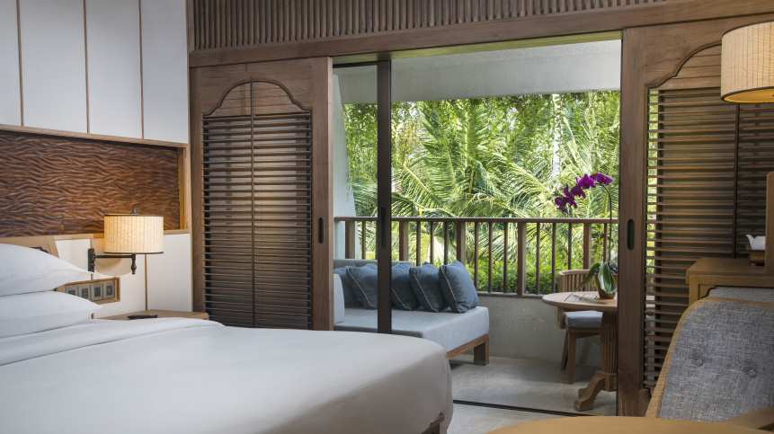 Hyatt Regency Bali accommodations reflect authenticity with carved banyan wood and bamboo panelling, alongside fixtures and furniture that match the rusticity of the place. An onsite club lounge boasts private concierge services and complimentary breakfast as well as evening cocktails and canapés.