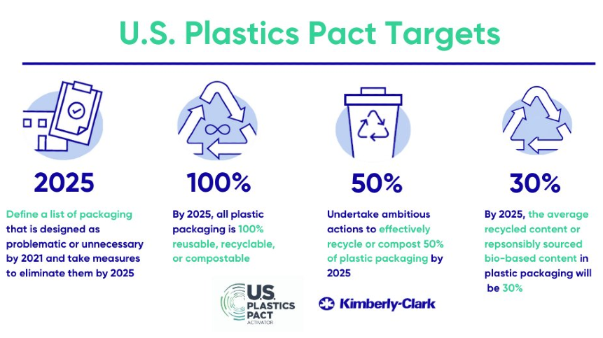 As a founding Activator of the US Plastics Pact, Kimberly-Clark has agreed to collectively deliver against these four ambitious goals across its US business, in alignment with the company’s 2030 strategy and goals.