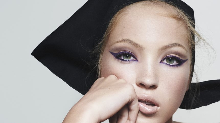 In the lead photograph, Moss showcases the Marc Jacobs Beauty Fineliner Ultra-Skinny Gel Eye Crayon in (grape)vine, one of five limited-edition colours debuting for spring. She joins a line-up that includes Jessica Lange, Edie Campbell, Aya Jones, Kaia Gerber, Winona Ryder, and Adwoa Aboah, who have served as faces of the brand in the past.