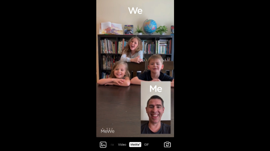 MeWe’s allow members to simultaneously film and share videos using their phone’s inward and outward-facing cameras. With MeWe’s, your phone is recording you talking (“Me”), and what you’re talking about at the same time (“We”) – creating a unique double-view video. MeWe’s can be created by members with iPhone XR or newer and viewed on all platforms such as desktop, Android, and iOS.