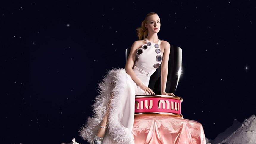 The release of the fresh scent, Miu Miu Twist, features the appearance of Elle Fanning in a celestial creative campaign shot by Mert & Marcus.