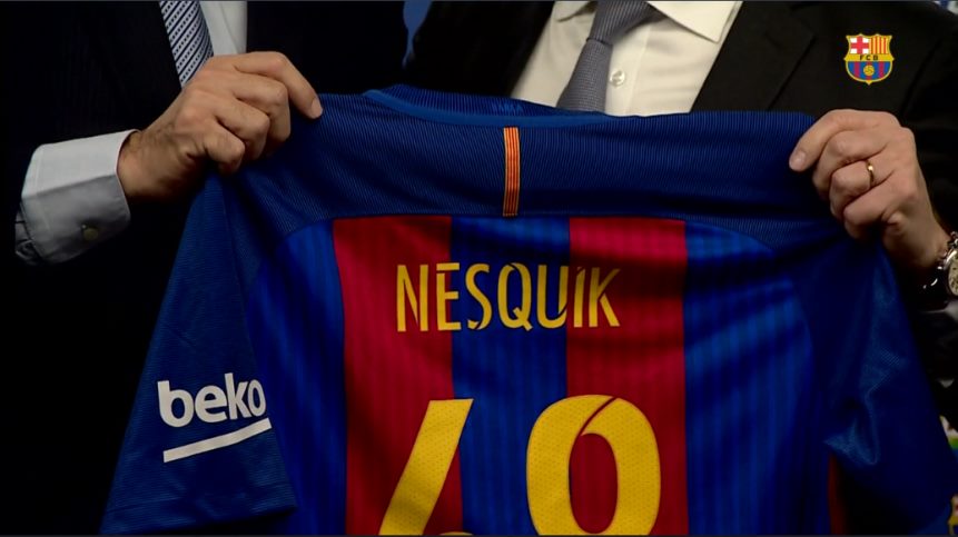 The global alliance names the marque an official club sponsor for the next four years. Spanning image, association, marketing, publicity, digital, promotions, merchandising, hospitality rights, and FCB Escola activities, the strategic tie-up includes Nesquik in Europe, the Middle East, and Africa.