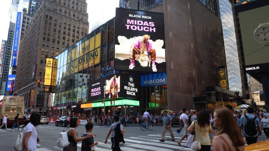 “We understand that urban audiences want fun, shareable moments, which is why we designed the creative to reinforce Slick Rick’s brand and allow his personality to pop on the screen,” said Tim Wasicki, Regional Creative Director at OUTFRONT Media. “Times Square attracts some of the largest audiences in the world and that requires campaigns to stand out. This creative paired with Slick Rick’s natural energy has done just that.”
