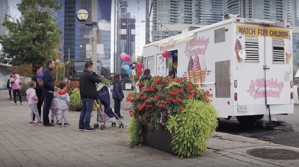 The campaign takes place in a Toronto Square, where an ice cream van is settled down. The ice-cream man tries to sell its products to families and more precisely to kids. When customers ask what are the ice-creams flavours, the ingredients are quite classics, but there is one ingredient which makes the difference: there is Nicotine.