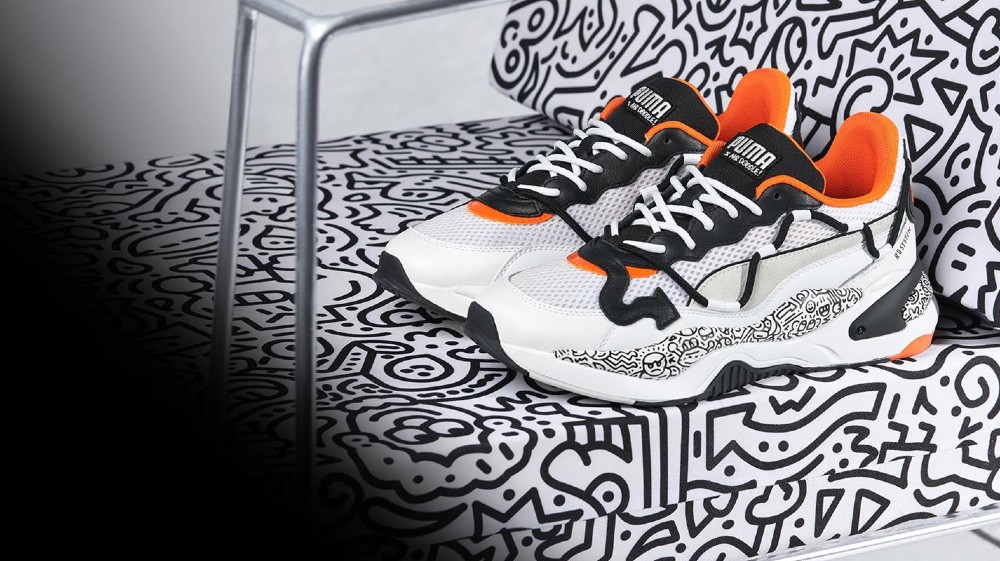 The Sky LX Low, RS-2K, Cali Wedge, Leadcat 20 and Mile Rider are given a playful look for the PUMA X MrDoodle collection. The RS-2K X MrDoodle features embellishments like asymmetric lacing, doodles on the midsole, and a doodle arrow below the laces. The Mile Rider X Mr.Doodle features a sporty mesh upper with colourful overlays and doodle graphics on the midsole.