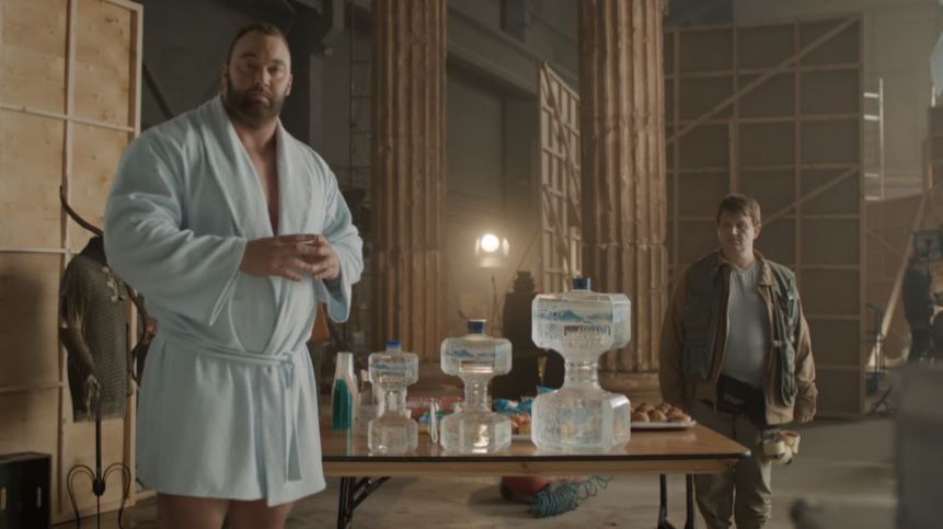 The holder of Europe’s ‘Strongest Man’ title, the actor was chosen by the water company as the ambassador for said push