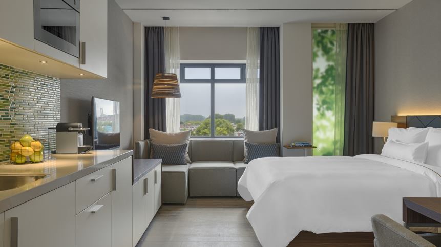 Providing an atmosphere which fuels life in balance and on the move, the reimagined experience is ideal for travellers visiting for a few days or weeks. The hotel also provides a keyless entry system, a first for the industry. The feature allows guests to use their smartphone or Apple Watch as a room key.