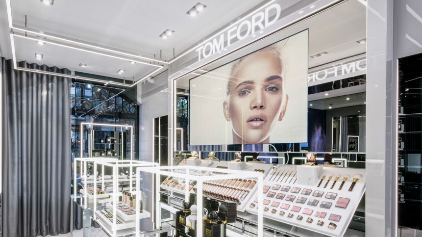 The inimitable touch of Tom Ford reverberates in every dimension of the store, beginning with the LED screens lining the façade with the latest campaigns