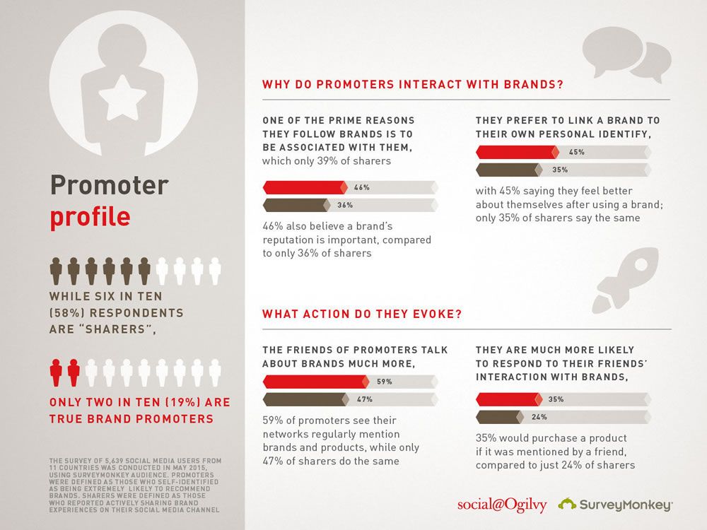Authentic brand promoters—respondents who self-identified as being extremely likely to recommend brands and products to friends—are far more rare and influential than sharers. The research reveals notable differences between the profile of a promoter and social sharer.
